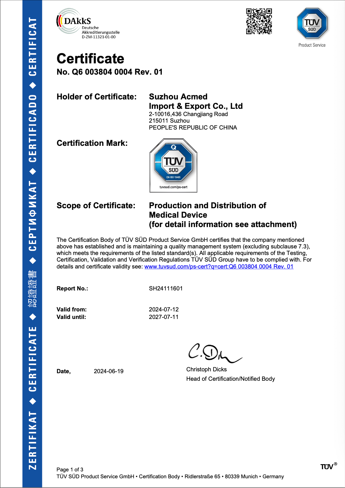 Suzhou Acmed Import & Export Co., Ltd wurde 2006 gegründet und ist ein profession eller Anbieter von Medizin produkten für Kranken häuser, Notfälle, Privathaus halte und spezielle Umgebungen. Seit neun Jahren im Export tätig, werden unsere Produkte in die USA, Frankreich, Großbritannien, Malaysia und Kanada verkauft. Wir haben auch mit berühmten Käufern wie Endo choice, Loblaw und Walmart Canada zusammen gearbeitet.